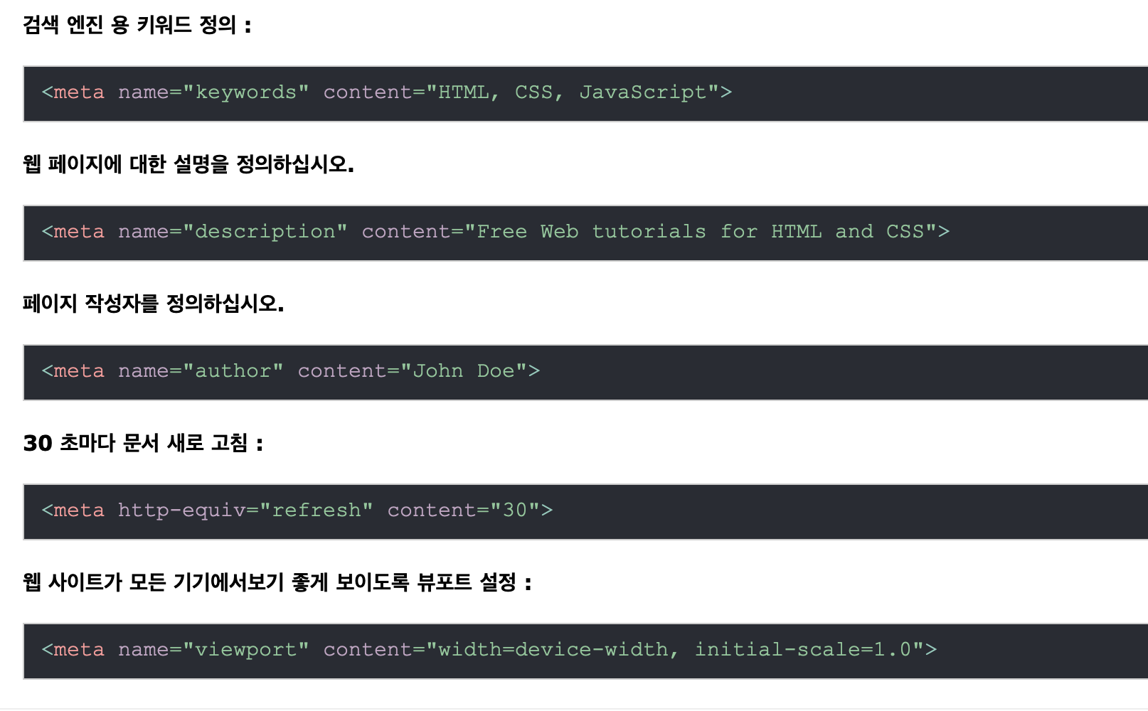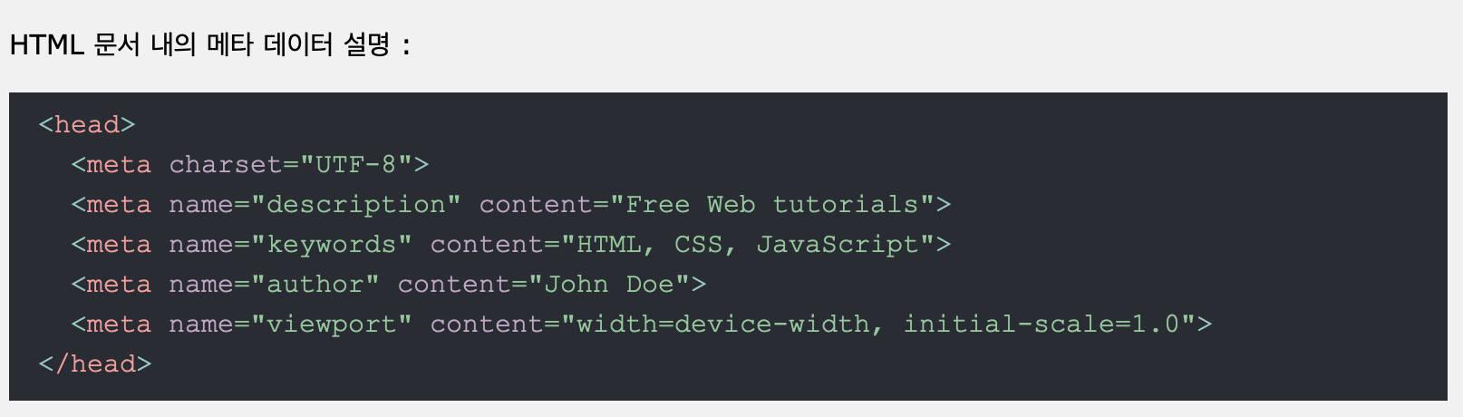 HTML 문서의 <head>와 </head> 사이에 입력하는 특수 태그로서 사이트의 디자인에는 전혀 영향을 미치지 않고,