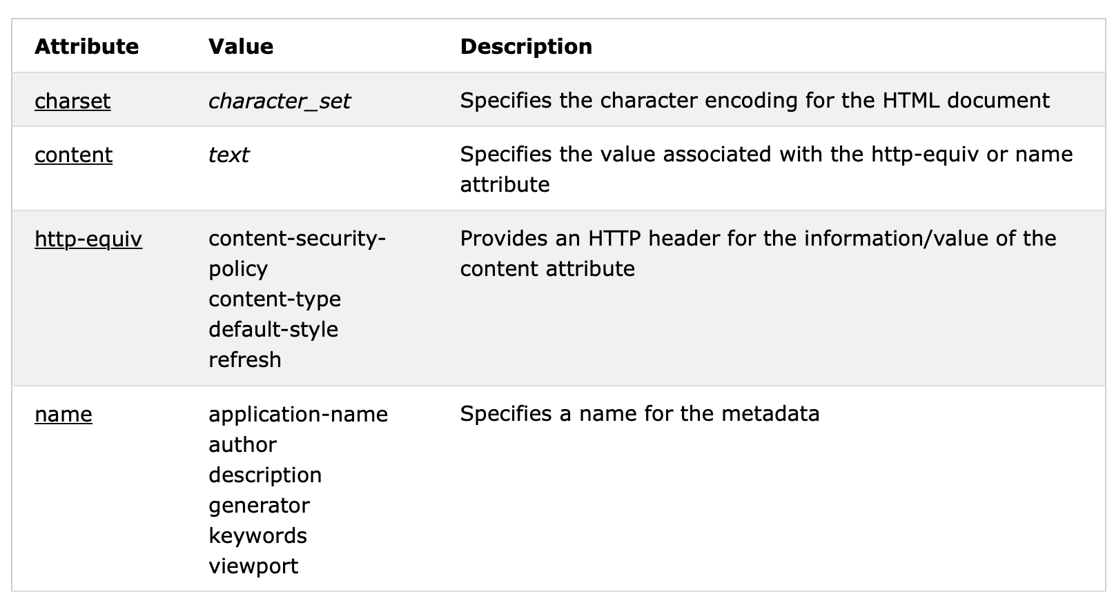 웹 브라우저가 서버에 명령을 내리는 속성으로 name 속성을 대신하여 사용될 수 있으며, HTML 문서가 응답 헤더와 함께 웹 서버로부터 웹 브라우저에 전송되었을 때에만 의미를 갖는다.