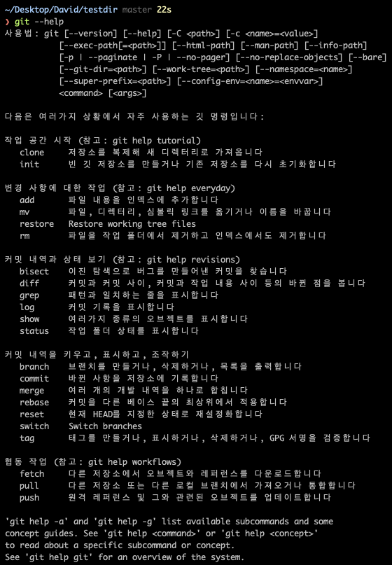 위의 git --help 이후의 메시지에서도 볼 수 있듯