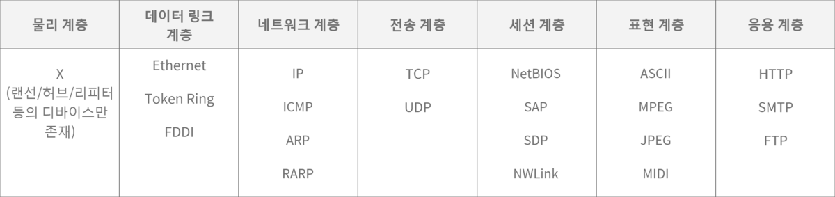 (각 디바이스 자체가 1계층의 프로토콜이라 할 수 있다)