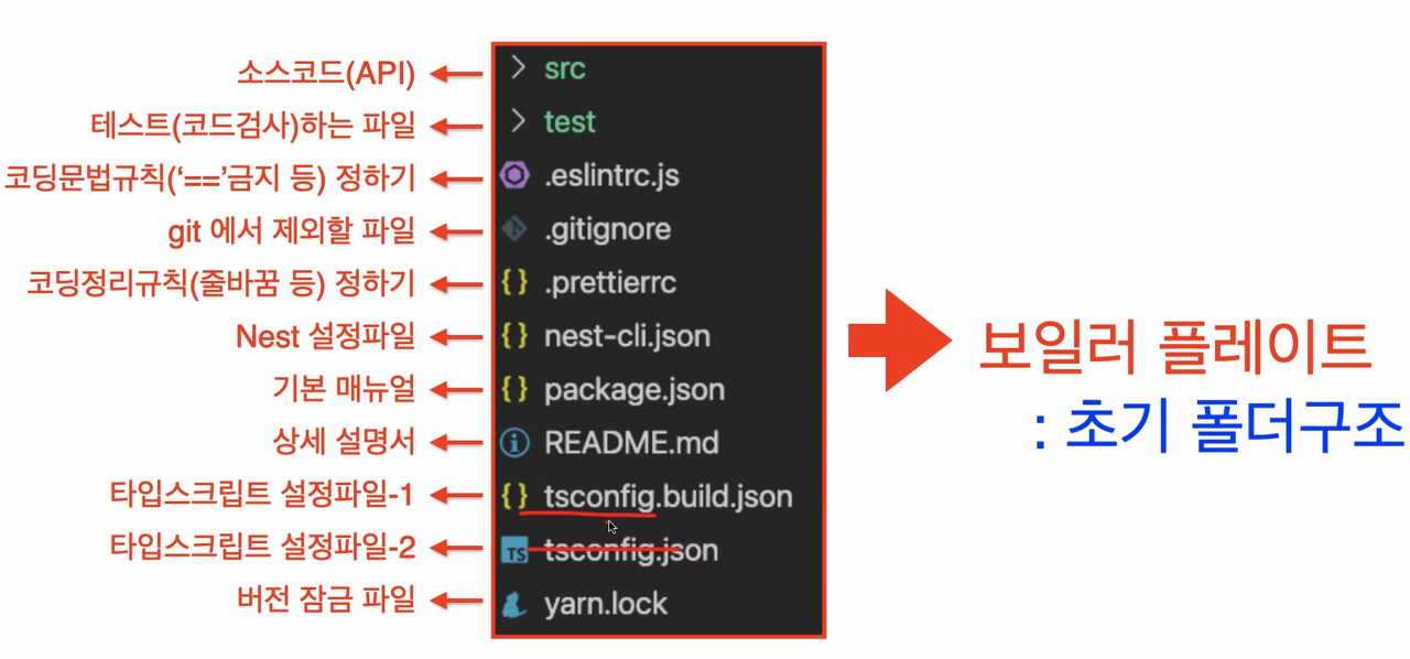 그리고 설치 후 처음 나타나는 폴더 구조를 '보일러 플레이트' 라고 표현한다.