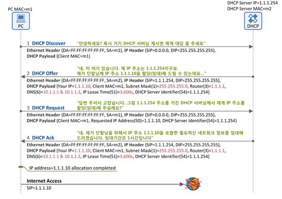 IP 주소를 할당받는 데에는 DHCP 라는 프로토콜이 필요하며,